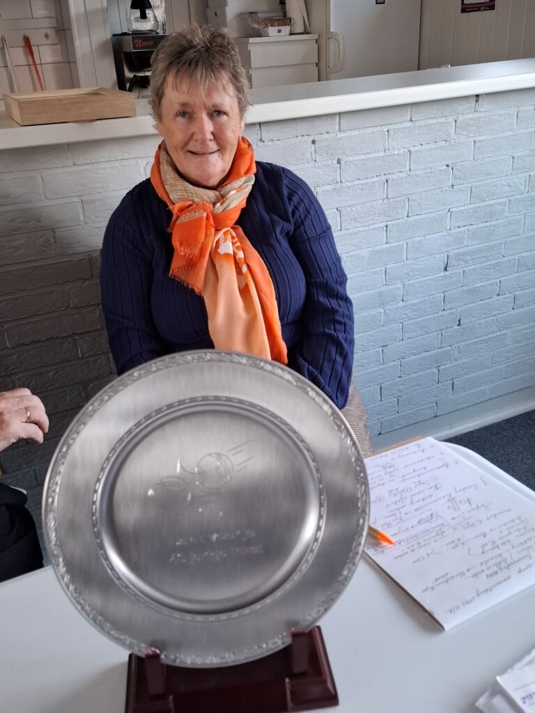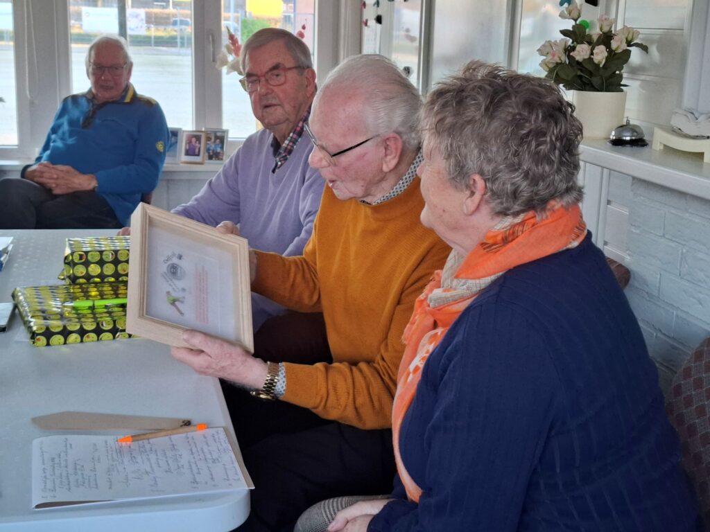 Tijdens onze nieuwjaarsbijeenkomst nam voorzitter Gezienus Hulzebos het initiatief om onze onmisbare kantinebeheerster in het zonnetje te zetten voor haar onvolprezen verdiensten binnen onze vereniging gedurende de afgelopen 40 jaar.